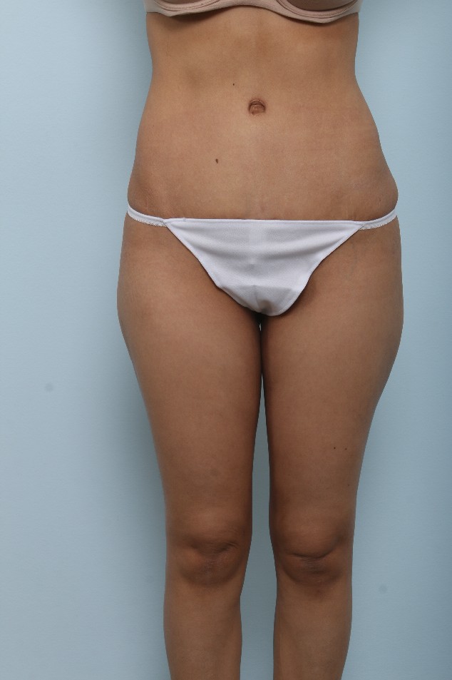 This female patient in her mid-30s underwent an abdominoplasty with liposuction. Her procedure removed 2 pounds of excess skin and fat while tightening the abdominal muscles — restoring a smoother, flatter, and more defined midsection.