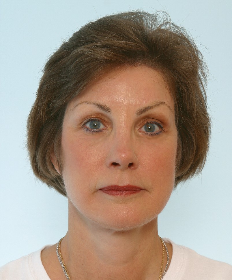 This 52 yr old lady shows the classic signs of facial aging. Her brows have dropped over her upper eyelids. She has developed bags of her lower lids and lost the pretty V shape of her lower face. Her result shows a return to her youthful beauty in a naturally pleasing manner that reveals no signs of human intervention.
