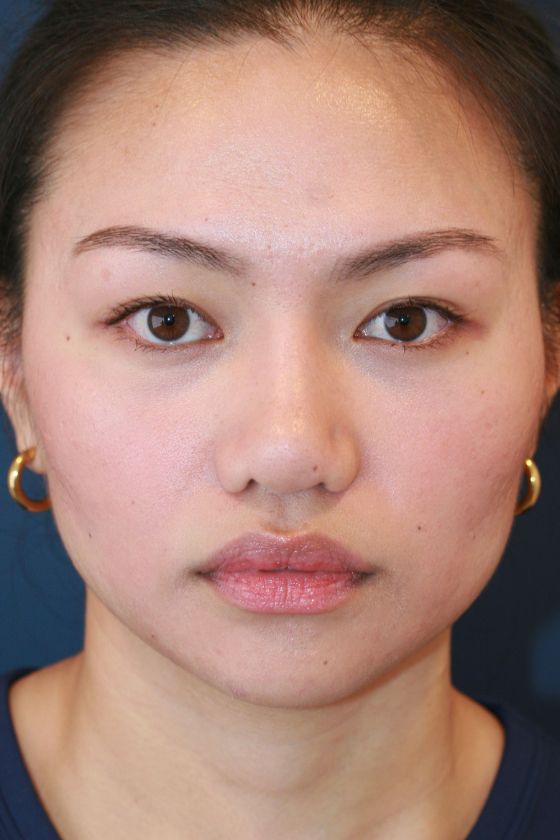 anterior augmentation of the nasal radix, more columellar show, a more narrow nasal base and a smaller more well defined nasal tip. Post operative photos taken four months after surgery.