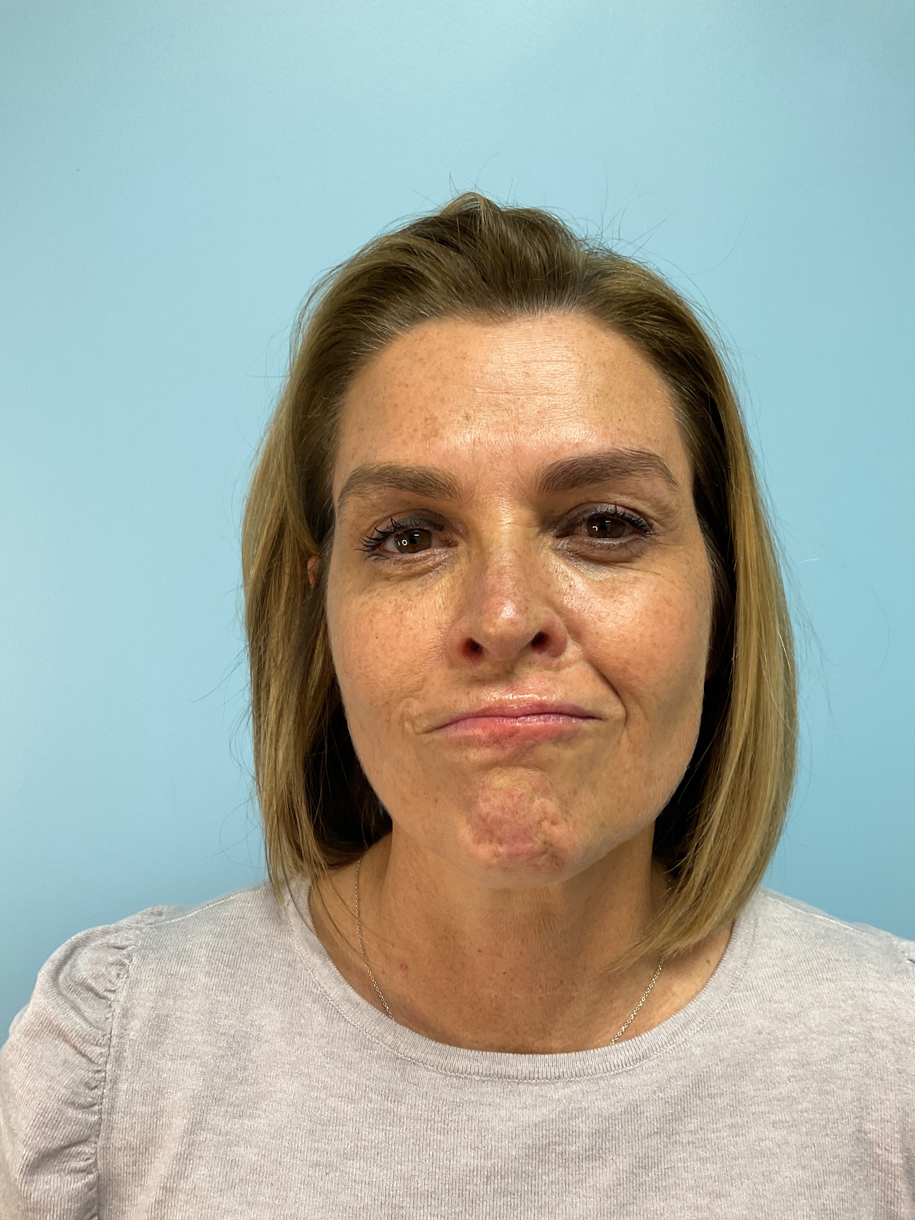 This case involves a 54-year-old female patient who underwent BOTOX® Cosmetic treatment. The before and after images, taken two weeks apart, document the visual results of the procedure. In the initial photo, the presence of pronounced forehead lines, glabellar lines, and crow’s feet are evident. Following treatment, the subsequent image reveals a noticeable reduction in these facial lines. The skin appears smoother particularly in the forehead and around the eyes. This outcome highlights the effect of BOTOX® injections in temporarily diminishing the appearance of moderate to severe facial wrinkles. The patient maintained a consistent weight of 160 lbs throughout the period between both photographs.